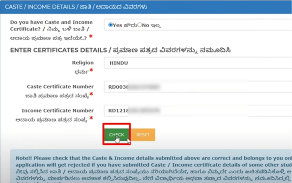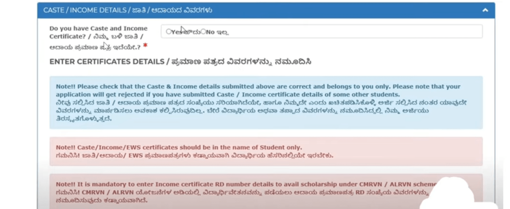 Income, Caste, and Other Mandatory Details