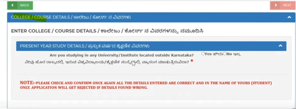 Only colleges within Karnataka are eligible; students studying outside the state cannot apply through this portal.