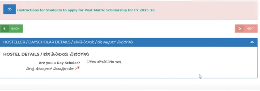Step 3: Hostel / Day Scholar Details