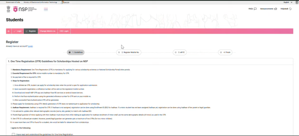 The NSP OTR registration is mandatory for ST and SC students. If a student does not register for OTR on the NSP portal, the application will be rejected.