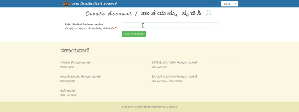 Enter your student Aadhaar number and proceed by clicking the next button.