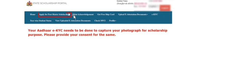 Now the question arises: what should I do after eKYC? The simple answer is to apply for your scholarship. On the home page, click on Apply for Post-Matric Scholarship.
