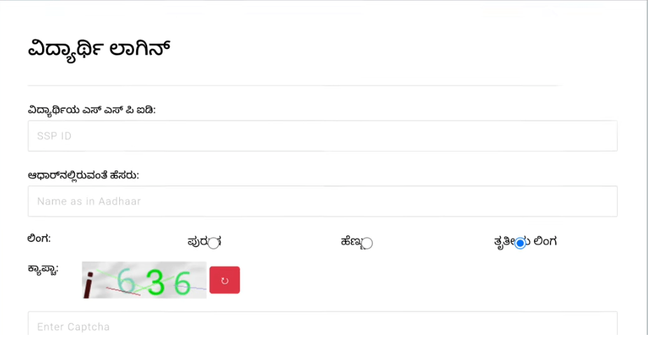 SSP e-Attestation Portal ಎಸ್.ಎಸ್.ಪಿ ಇ-ಅಟೆಸ್ಟೇಶನ್ ಪೋರ್ಟಲ್Visit this link in your browser: eattestation.ssp.karnataka.gov.in and enter the following details: SSP ID, name as in Aadhaar, select gender, and enter the captcha code.