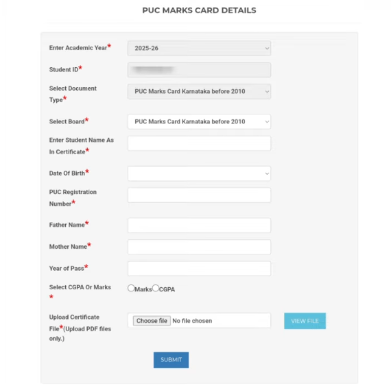 | 6 | Previous Year Qualifying Course Marks Card (Other State) | • Students who studied outside Karnataka |